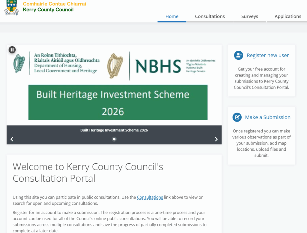 To view current Part VIII applications and consultations, please click the image below to visit our Consultation Website at consult.kerrycoco.ie